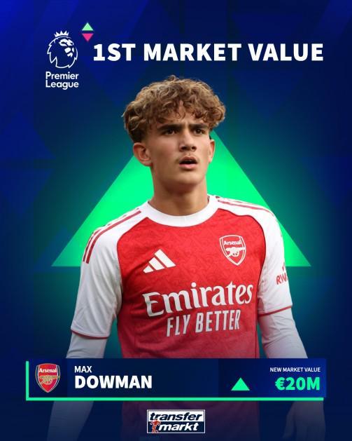 道曼的2000万欧身价在阿森纳队内排名第21位,他与柏林赫塔防守型中场艾希霍恩并列成为全球身价最高的16岁球员。